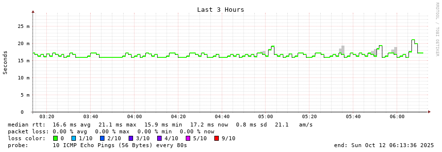 traceroute to www.akamai.com (23.213.53.10), 30 hops max, 60 byte packets - Generated at 2025-10-12 02:45:01 3 > 4 > 5 > 6 > 7 > a23-213-53-10.deploy.static.akamaitechnologies.com (23.213.53.10) [AS20940] 15.920ms 15.923ms 15.908ms