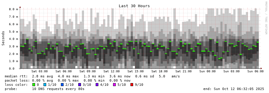 traceroute to 192.33.4.12 (192.33.4.12), 30 hops max, 60 byte packets - Generated at 2025-10-12 06:00:01