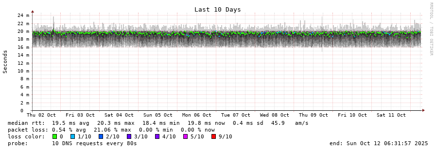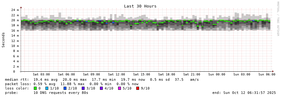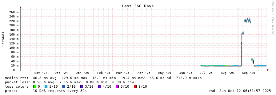 traceroute to 2001:7fe::53 (2001:7fe::53), 30 hops max, 80 byte packets - Generated at 2025-10-12 06:00:01