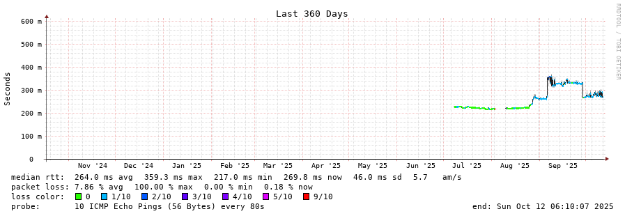 6 > 66.198.70.10 (66.198.70.10) [AS6453] 267.199ms 267.155ms 267.450ms