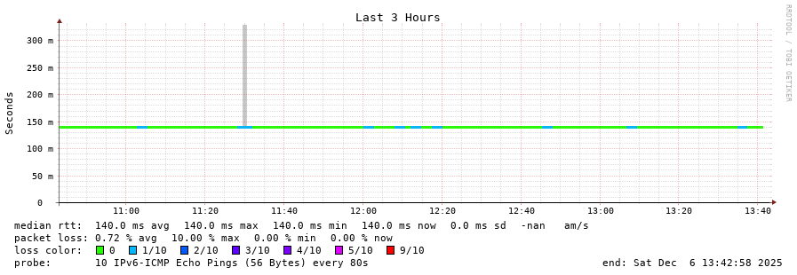13 > 2001:4350:1:1::ff90 (2001:4350:1:1::ff90) [AS5438] 139.841ms 139.835ms 139.837ms
