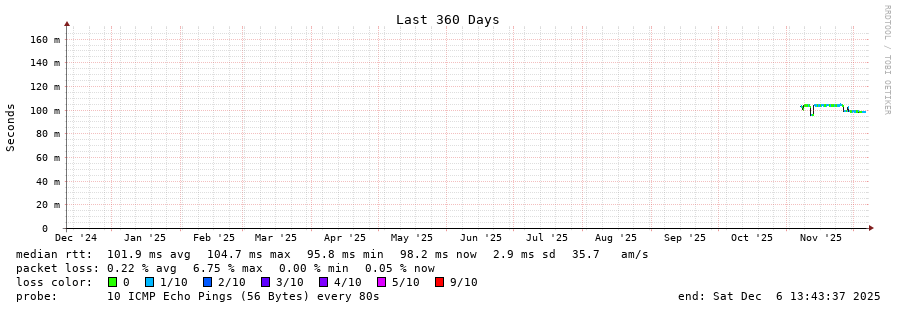 15 > 212.100.172.13 (212.100.172.13) [AS215262] 98.219ms 98.281ms 98.159ms