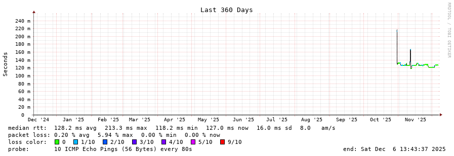 traceroute to 194.243.137.99 (194.243.137.99), 30 hops max, 60 byte packets - Generated at 2025-12-06 13:30:01
