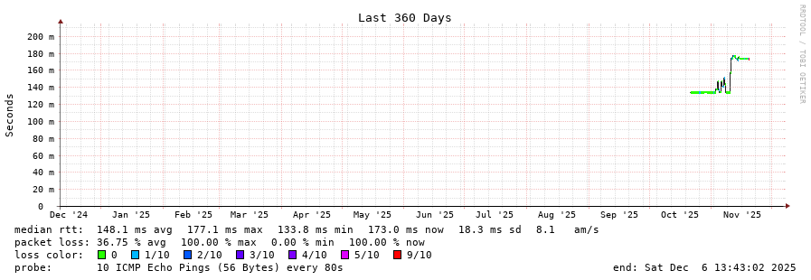 traceroute to 85.114.53.205 (85.114.53.205), 30 hops max, 60 byte packets - Generated at 2025-12-06 13:30:01