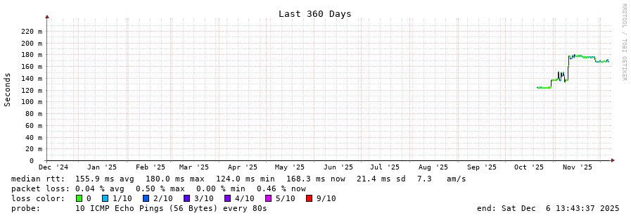 traceroute to 85.114.46.237 (85.114.46.237), 30 hops max, 60 byte packets - Generated at 2025-12-06 13:30:01