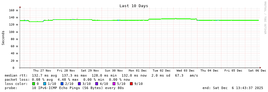 14 > 2001:ac8:10:10::d185 (2001:ac8:10:10::d185) [AS9009] 131.055ms 131.204ms 131.071ms