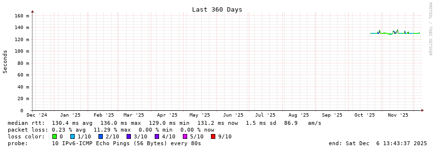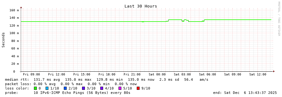 traceroute to 2a0c:ca80::41 (2a0c:ca80::41), 30 hops max, 80 byte packets - Generated at 2025-12-06 13:30:01