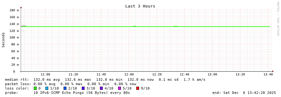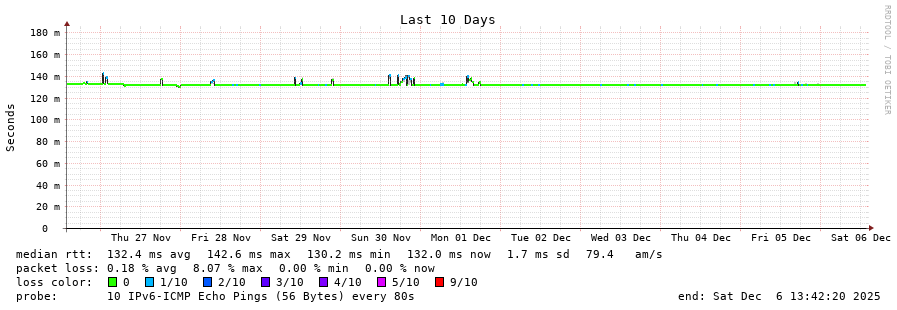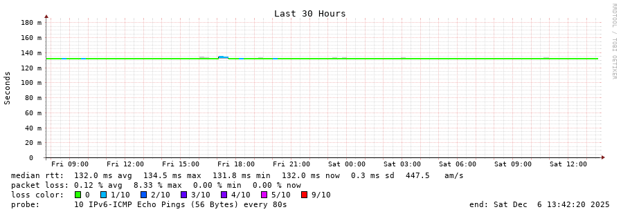 traceroute to 2a0b:2f00:0:234::151 (2a0b:2f00:0:234::151), 30 hops max, 80 byte packets - Generated at 2025-12-06 13:30:01