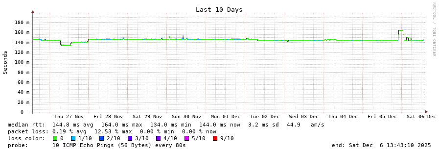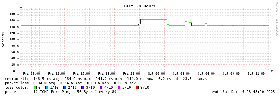 12 > de-cix.v4.telecomit.ro (80.81.195.242) [*] 140.866ms 140.800ms 140.807ms