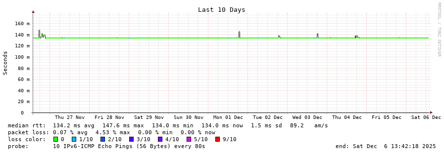 18 > 2001:730:2601:f005::2 (2001:730:2601:f005::2) [AS6830] 137.735ms 137.795ms 137.733ms