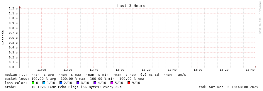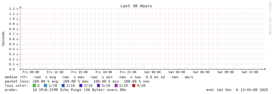 traceroute to fd9b:f75:a3d5::2 (fd9b:f75:a3d5::2), 30 hops max, 80 byte packets  -  Generated at 2025-12-06 13:30:01