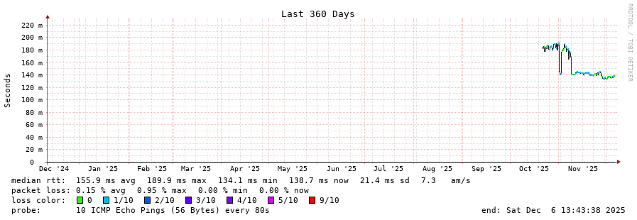 traceroute to 185.143.195.29 (185.143.195.29), 30 hops max, 60 byte packets - Generated at 2025-12-06 13:30:01
