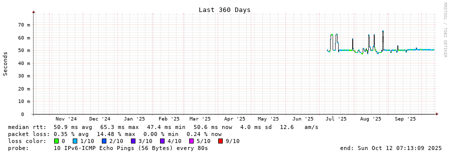 traceroute to 2604:2dc0:202:200::1f9 (2604:2dc0:202:200::1f9), 30 hops max, 80 byte packets - Generated at 2025-10-12 06:15:01