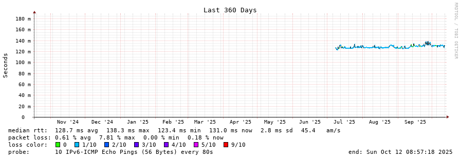 8 > 2001:67c:128c::1c (2001:67c:128c::1c) [AS5511] 107.526ms 107.644ms 107.571ms