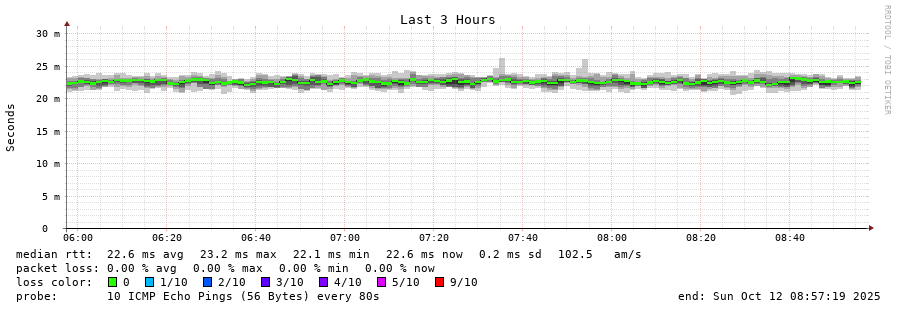 traceroute to 192.99.146.179 (192.99.146.179), 30 hops max, 60 byte packets - Generated at 2025-10-12 08:45:01 3 > 4 > 5 > 6 > dfw-da2-sbb1-8k.tx.us (192.99.146.179) [AS16276] 22.118ms 21.658ms 24.413ms
