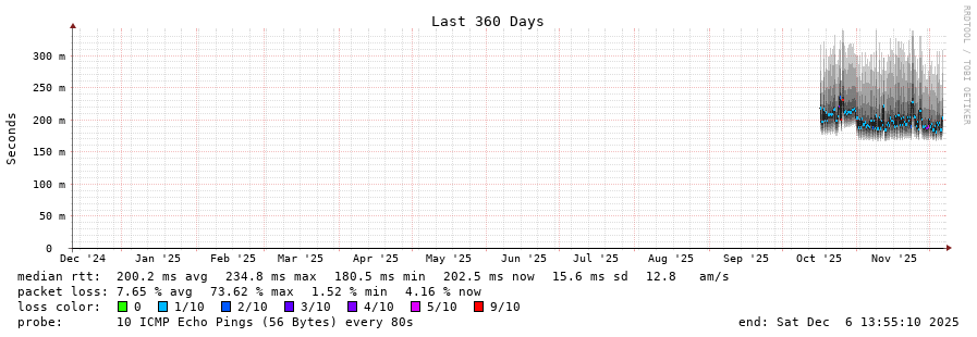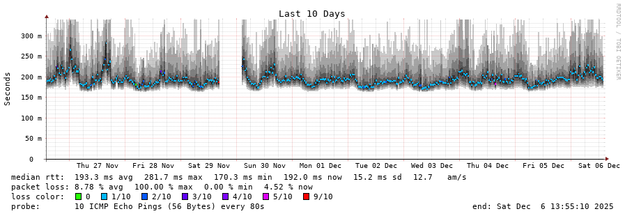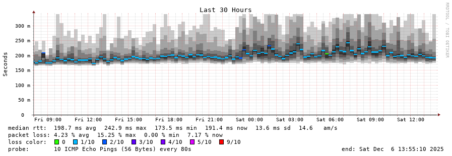 traceroute to 190.104.210.9 (190.104.210.9), 30 hops max, 60 byte packets - Generated at 2025-12-06 13:45:01