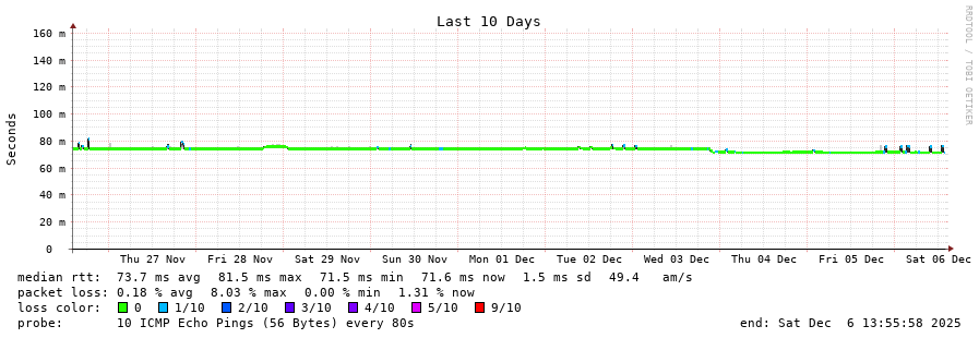 13 > 38.142.155.90 (38.142.155.90) [AS174] 74.989ms 74.574ms 74.741ms