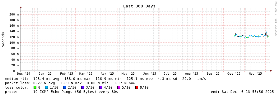 10 > 213.144.185.5 (213.144.185.5) [AS6762] 101.363ms 108.405ms 108.495ms