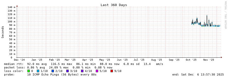 10 > 200.25.12.210 (200.25.12.210) [AS7195] 82.270ms 82.138ms 82.291ms