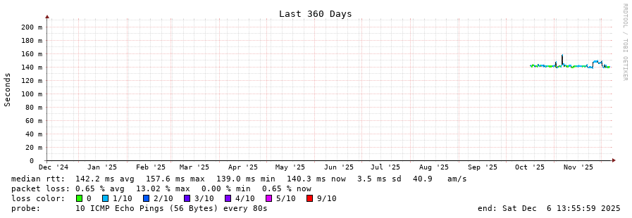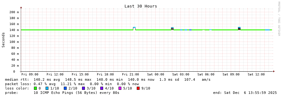 12 > 200.25.56.95 (200.25.56.95) [AS7195] 141.977ms 141.960ms 142.004ms