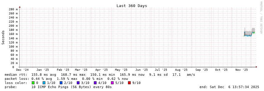 traceroute to 131.0.96.119 (131.0.96.119), 30 hops max, 60 byte packets - Generated at 2025-12-06 13:45:01