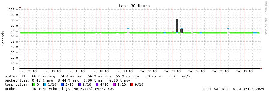 10 > 8.243.248.218 (8.243.248.218) [AS3356] 69.286ms 69.250ms 69.299ms