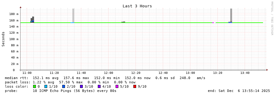 15 > 170-79-27-9.allrede.tec.br (170.79.27.9) [AS273683] 152.481ms 152.410ms 152.425ms