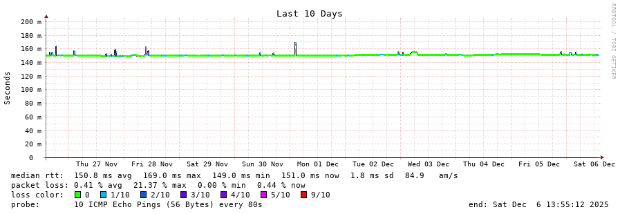 10 > ae1155.0.edge1.rio1.as7195.net (200.25.51.143) [AS7195] 131.173ms 130.902ms 130.934ms