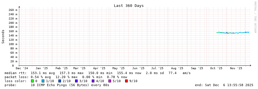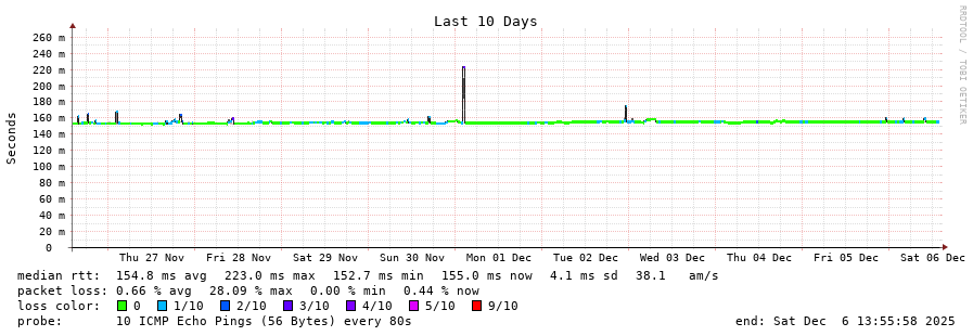 13 > 200.25.57.255 (200.25.57.255) [AS7195] 134.485ms 134.593ms 134.508ms