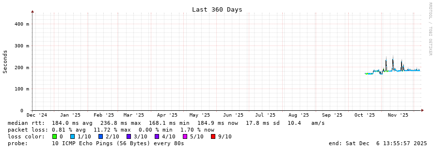traceroute to 190.105.41.85 (190.105.41.85), 30 hops max, 60 byte packets - Generated at 2025-12-06 13:45:01