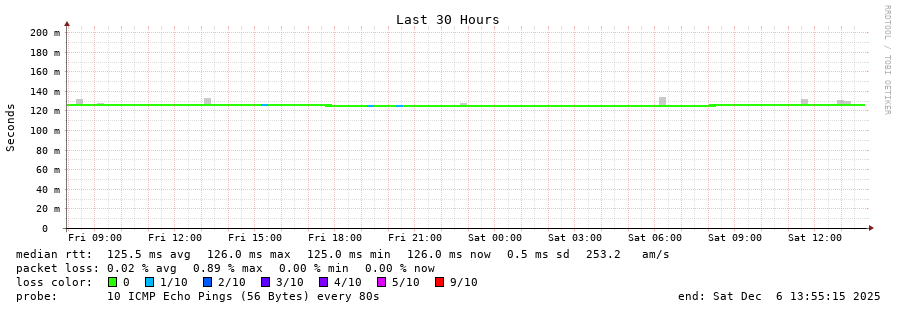 13 > 191.97.49.170 (191.97.49.170) [AS28032] 126.499ms 126.458ms 126.464ms