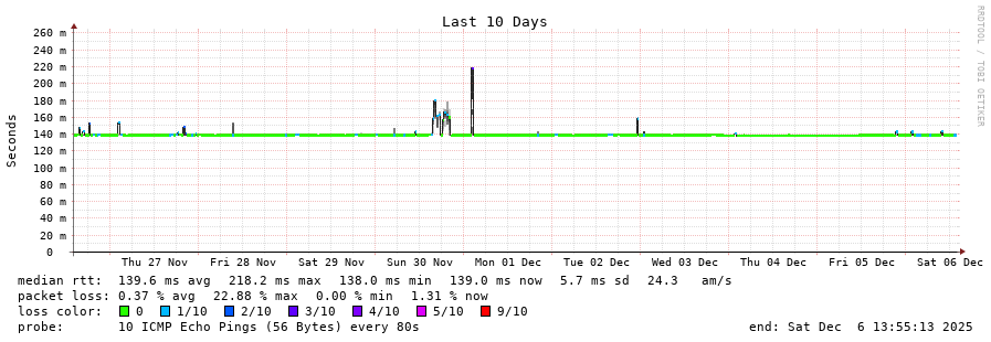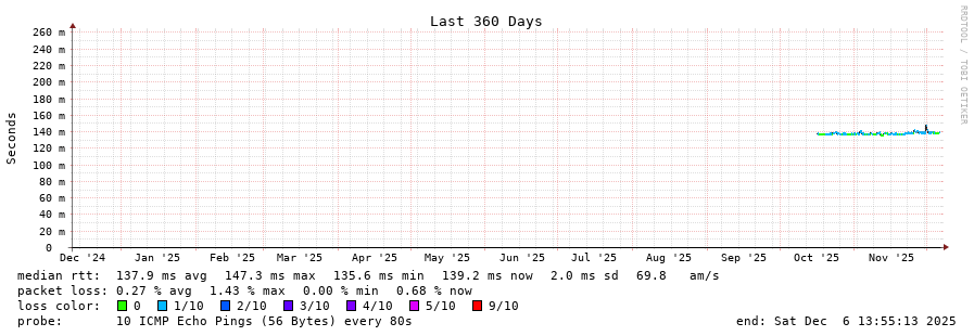 traceroute to 168.195.101.40 (168.195.101.40), 30 hops max, 60 byte packets - Generated at 2025-12-06 13:45:01
