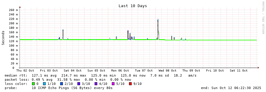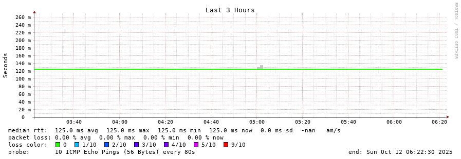 8 > 200.87.100.1 (200.87.100.1) [AS6568] 125.326ms 125.285ms 125.311ms