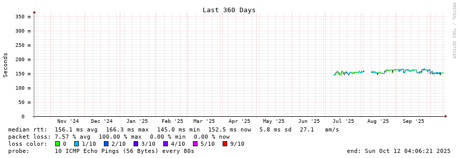 traceroute to 164.77.28.1 (164.77.28.1), 30 hops max, 60 byte packets - Generated at 2025-10-12 02:45:01