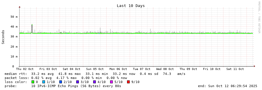 traceroute to 2602:feda:b8e:10::1 (2602:feda:b8e:10::1), 30 hops max, 80 byte packets - Generated at 2025-10-12 03:15:01