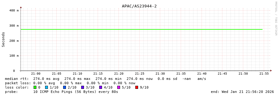 45. Median RTT 0.274 seconds